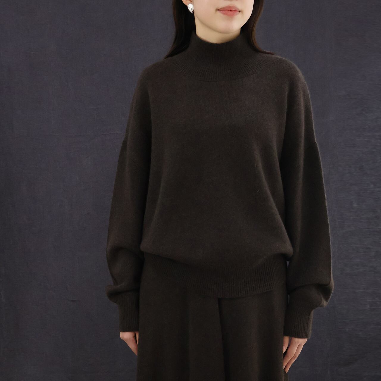 緩やかで柔らかなシルエットのオーバーサイズのタートルニット。