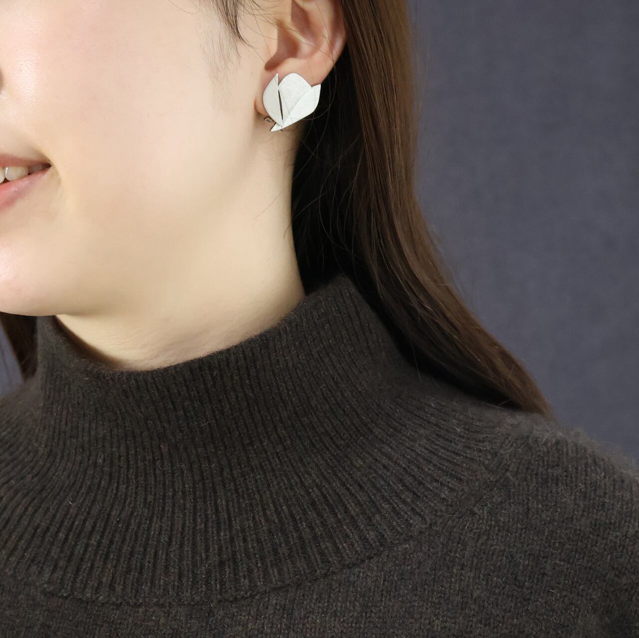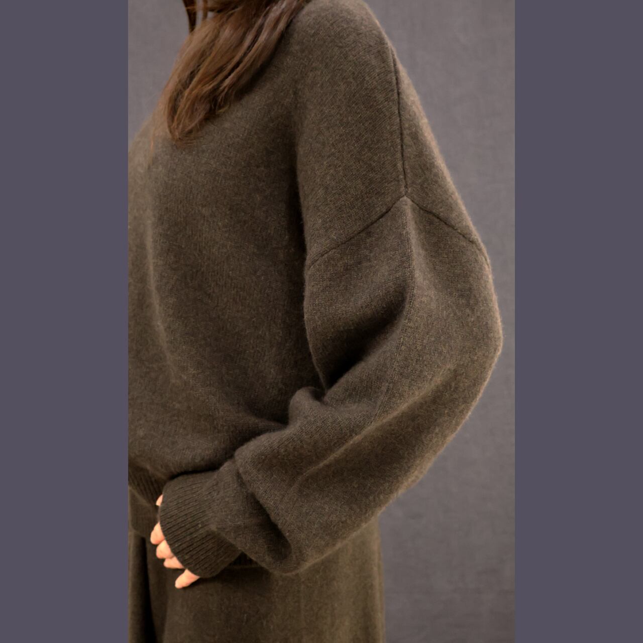袖口、裾、タートルは細めのリブ編み。さりげない仕草や動作で雰囲気を感じさせる絶妙なゆるみがoyunaだからこそ。