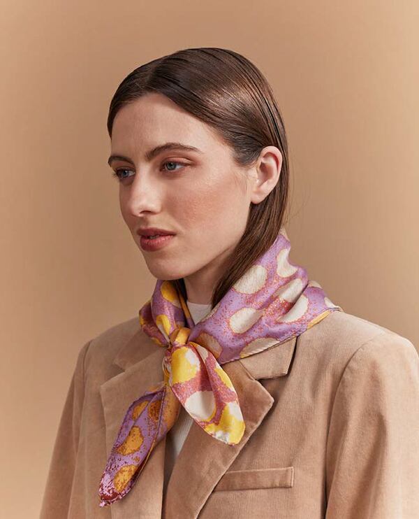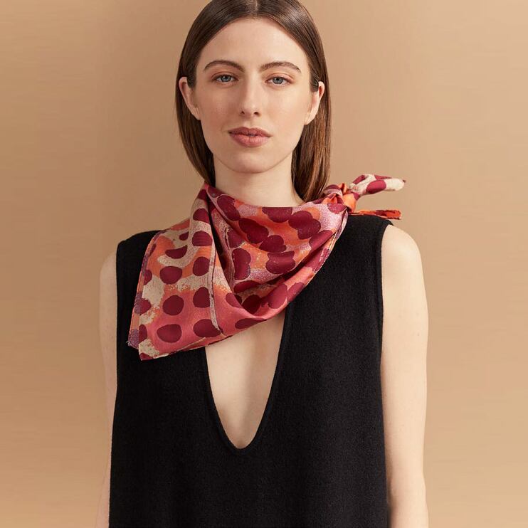 変形ドッド柄のキュートさと水彩画のようなやさしい色使いが他にはないアクセントになりますよ。