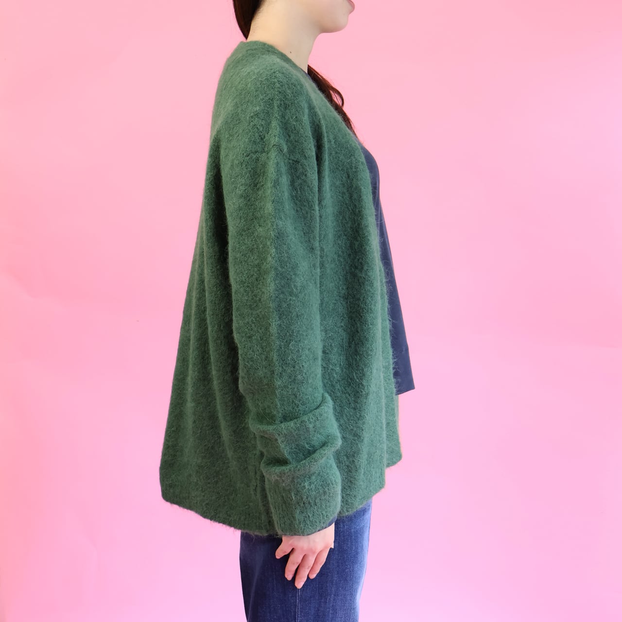 ブラウスやカットソーの上に気軽に重ねられるノーボタンのカーディガンはKARTIKA定番のデザイン。