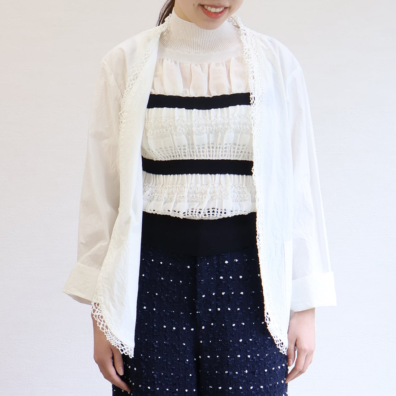 まずは季節の変わり目に、オフィスやお出かけにジャケットインとして重宝します。