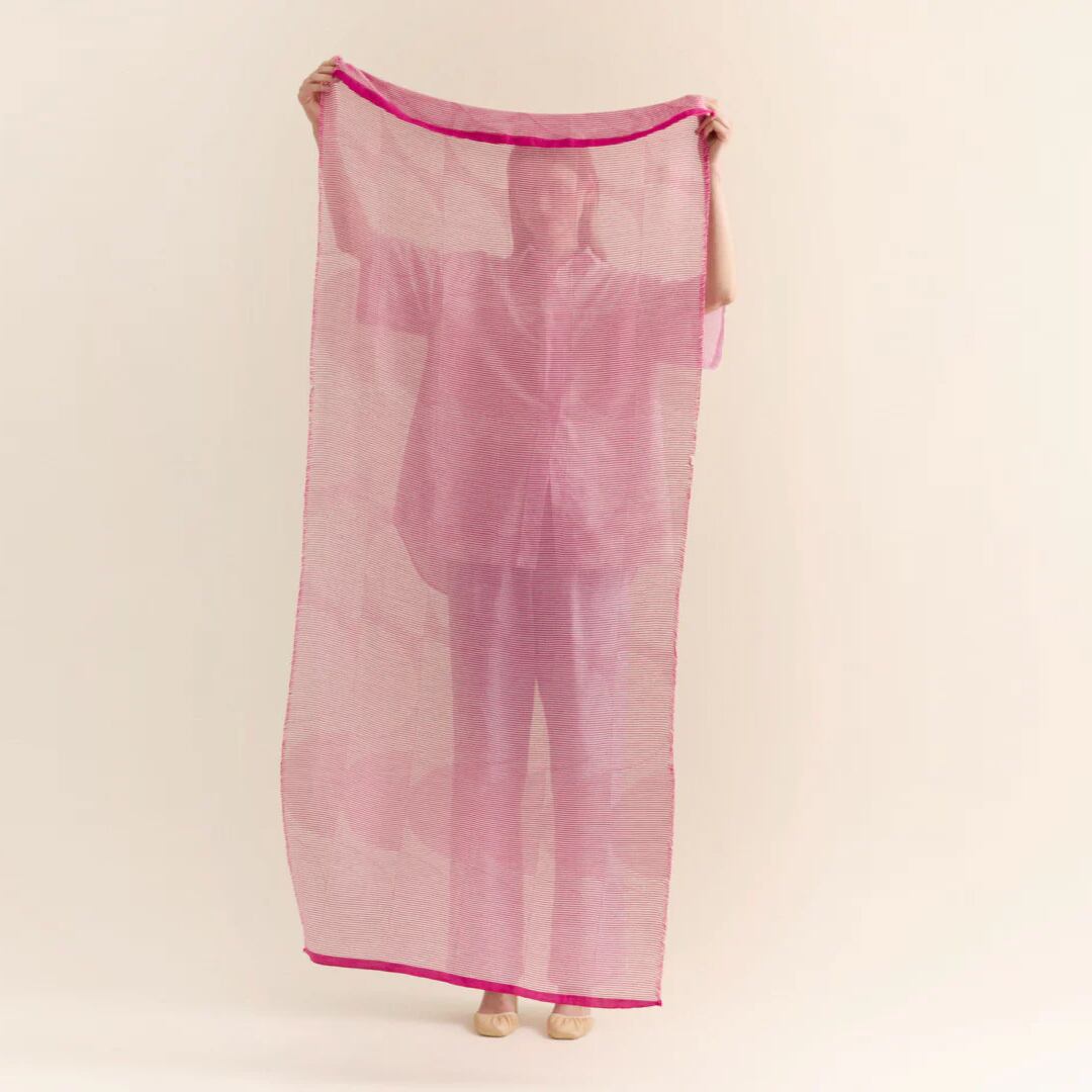 ドイツ出身の彼女はオリビエ・ラピデュスのもとで1990年からライセンス部門の責任者として仕事をし、並行してスカーフの製作を始めベルサーチのスカーフを作っていました。その後は、エルメス、ジル・サンダー、ヘルムート・ラングと仕事をしていたという経歴の持ち主。彼女の人柄も相まってとても温もりを感じる素敵なストールたちです。
