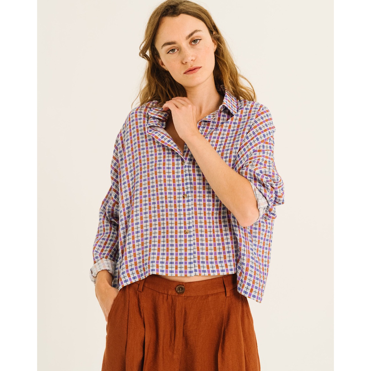 ボックス型のシャツは、着丈が短く揺れ感も涼し気な一枚。
